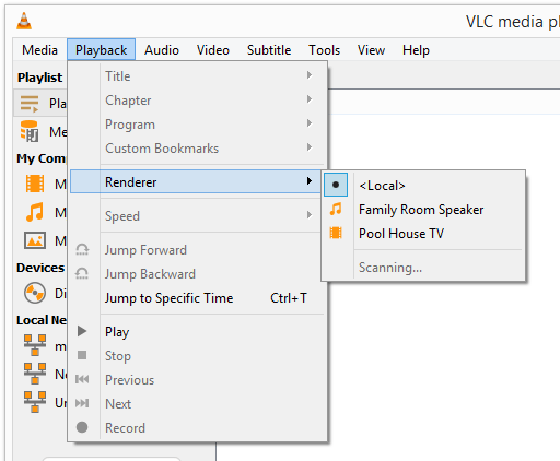 Step 2: Open the **Playback **> Renderer menu, and then select your Chromecast from the list.