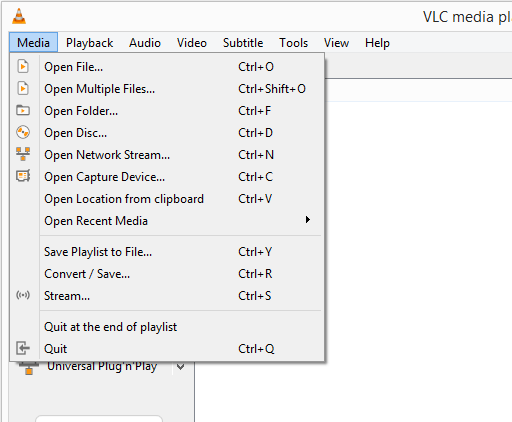 Step 3: Use the Media menu to import the file you want to play on your Chromecast. There’s an option to select just one file or a whole folder. You can even cast a network stream or disc from your disc drive.