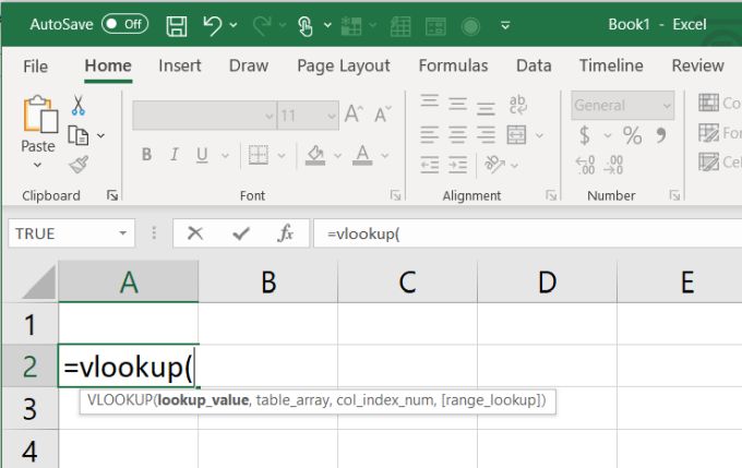 When you start typing =VLOOKUP( into any cell in Excel, you’ll see a pop-up showing all of the available function parameters.