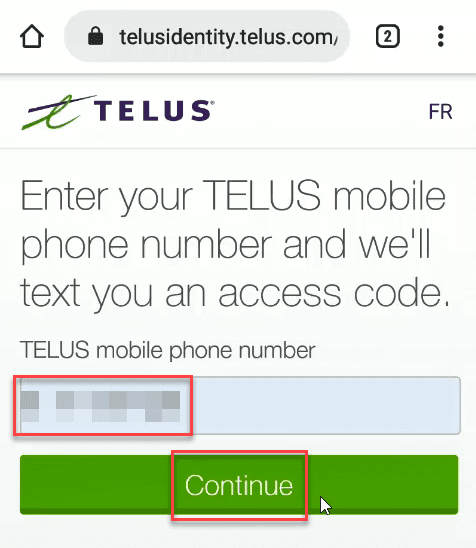 - At this point, your cell service provider’s method will take over. The example here is on the Telus network in Canada as that’s where I live. The service provider asks for the mobile phone number.