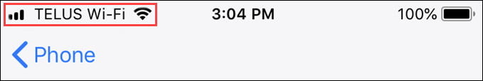 If you’re on an iPhone, look at the top-left corner. You should see the name of your carrier with the word WiFi and the WiFi icon next to it.