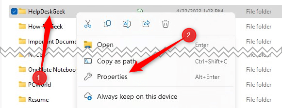 - If you want a bit more context, right-click the folder and then select Properties from the context menu.
