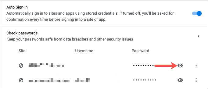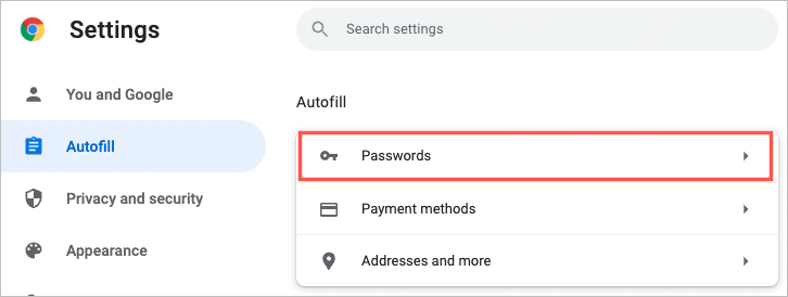 Tip: You can also go directly to your passwords by entering chrome://settings/passwords in the address bar.