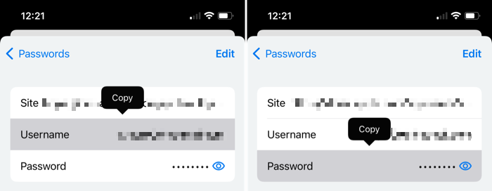 Copy a Username or Password