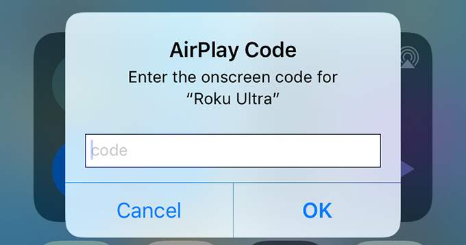 - A code will appear on your Roku. Enter this code in the prompt that appears on your iPhone.
