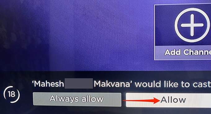 - A prompt should appear on your Roku. Select **Allow** in this prompt.