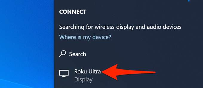 - Choose your Roku device from the list.
