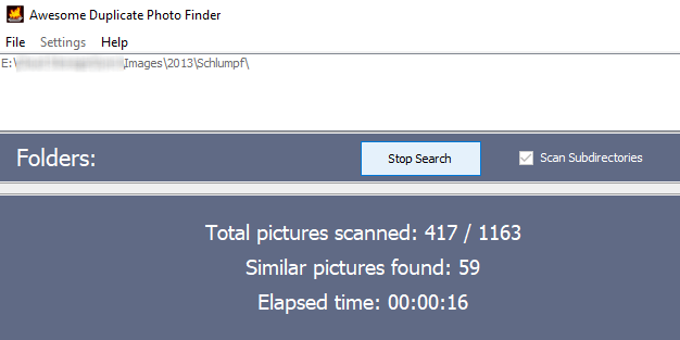 Obviously the time it takes to complete the duplicate search will depend on how many images are in the folder. For me, 1,163 images took just over a minute.
