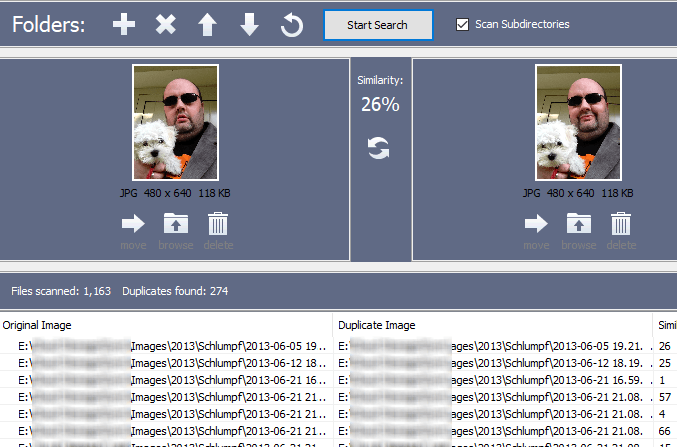 We got our dog in 2013, so I’m going to run the 2013 dog folder through Awesome Photo Finder and see how many duplicates it finds.