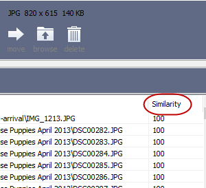 If you want to see the 100% duplicate images first and work your way down from there, click on the “Similarity” column down at the bottom of the screen. The results will now reassemble accordingly.
