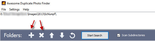 You can add as many folders as you want to one search, so use the “+” as many times as you need. If you decide to delete any of the folders from the photo finder, use the “X”.