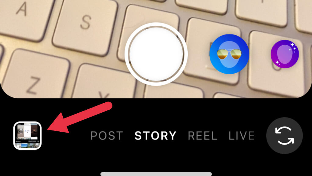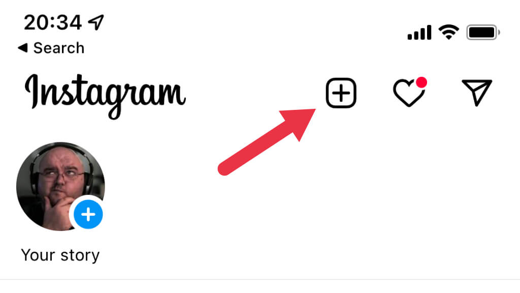 Select the “+” button in the Instagram app and select Story. Following this, select a video or photo you want to share as a Story by selecting the gallery at the bottom left of the screen.