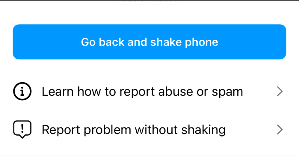 You may see a new feature where you can go back to where you had the problem and physically shake the phone to show Instagram’s developers where the issue is.