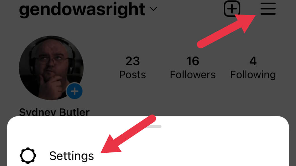 To get in touch from within the Instagram app, select the three lines at the top-right corner of the screen and then select the gear icon that represents Instagram Settings.