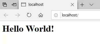 - You’ll see a web page like the following. Notice in the address bar that it says **localhost**. That’s the address to type in to go to your new website.