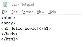 - Now that it’s saved as the right filetype, let’s put some content in it. Enter the following HTML code for a very basic web page and save it: