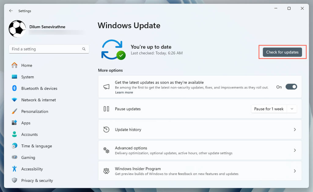 - Select Check for updates. If there’s a pending update, select Download and install.