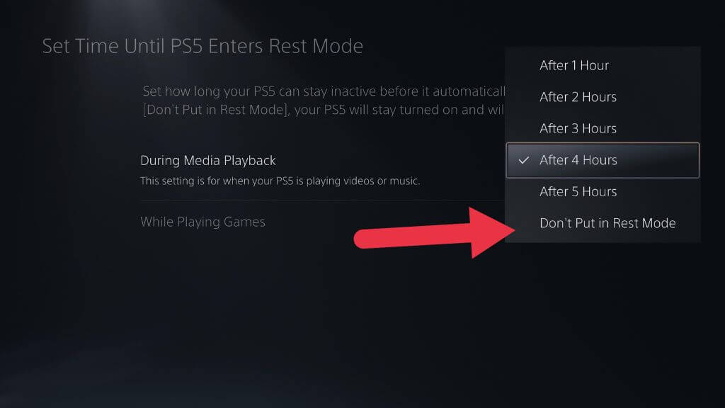 - Choose Don’t Put In Rest Mode for media and games, respectively.