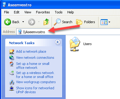 Once you have done that, try connecting from the Windows XP machine to your Windows 7/8/10 computer by opening Explorer and typing in the network path like below: