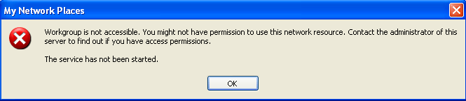 The first issue I ran into was when I went to My Computer, clicked on My Network Places and then clicked on** View workgroup computers**, I got the following error: