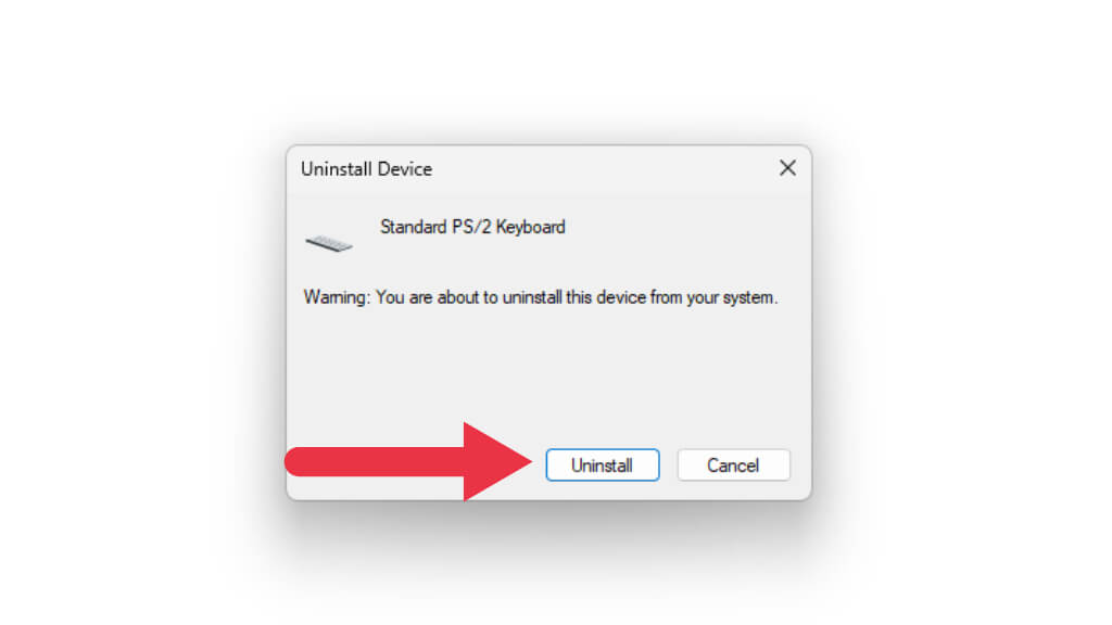 - Select Uninstall again in the confirmation window that pops up. Don’t tick Attempt to remove the driver for this device if you’re asked. You may want to remove the keyboard driver on a second attempt if this method doesn’t work the first time.