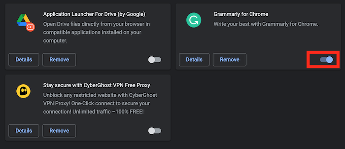 There, switch the toggles next to the extensions to the Off position.