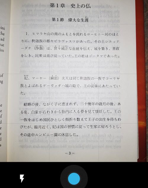 Note the grid overlay on the camera viewfinder. Use this to roughly align the document. If the image is too dark, switch on the flash by tapping the lightning bolt icon. When you are satisfied with the image, tap the blue button. Then you’ll be taken to this screen.