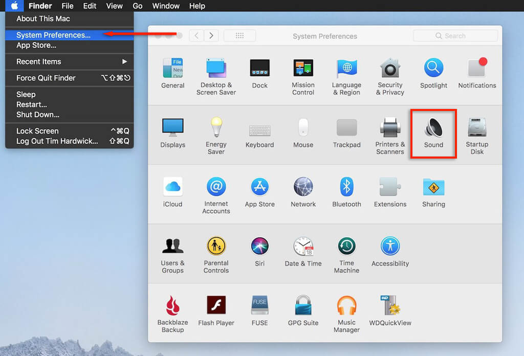 To fix audio issues, head back to System Preferences > Sound and select Output. Select the built-in speakers. Make sure the mute box isn’t ticked and move the volume slider to the right to increase your device volume.
