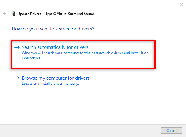 - Select Search automatically for drivers. If there are any driver updates available, the wizard will find and install them. If it fails, you can manually download the latest drivers from the manufacturer’s website. Then, select Browse my computer for drivers and choose the correct installation file.