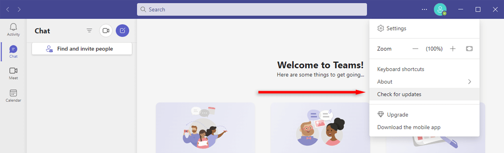 The first thing to do is to check that your Microsoft Teams app is fully updated. To do so: