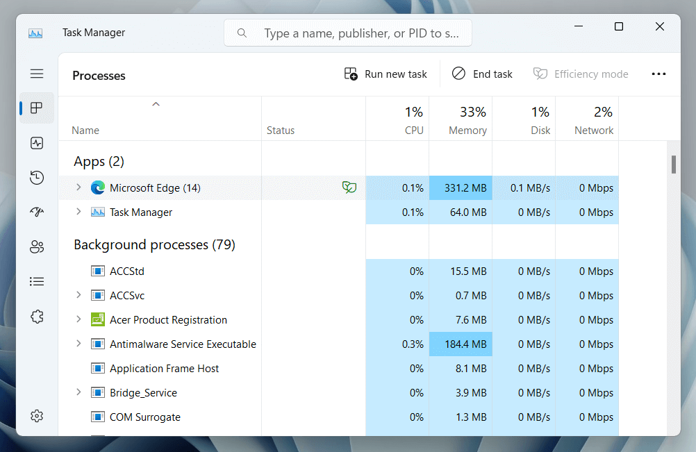 - Select the Microsoft Edge group of processes under the Processes tab.