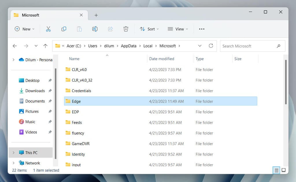 - Delete the folder labeled Microsoft Edge.