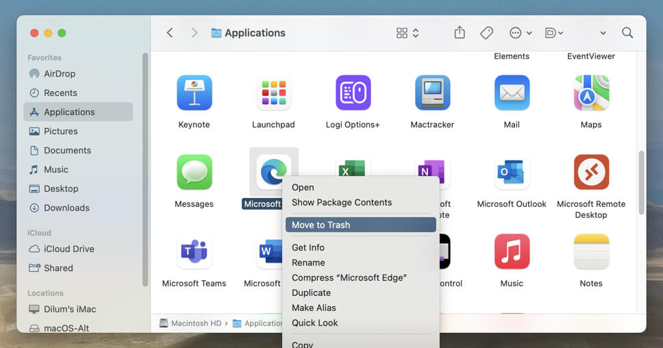 - Control-click Microsoft Edge and select Move to Trash.