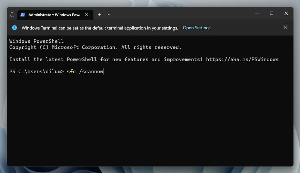 In Windows 10 and 11, you can run an SFC (System File Checker) scan to fix application launch issues caused by system file corruption. To do that: