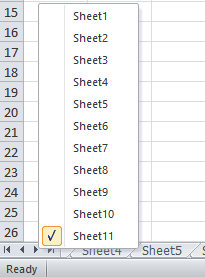 All you have to do to view a single spreadsheet is to click on its tab. But if you are working with many sheets with longer names, Excel won’t be able to display all the sheet tabs. In that case, you can use the arrows to the left of the tabs. These arrows will help you navigate left or right. You can also right-click on said arrows and a list of all the tabs will be displayed. Then you can just click on the desired worksheet.