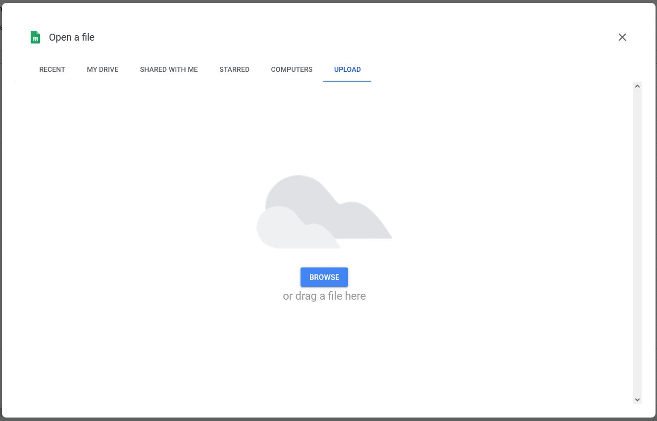 You can also click on Browse in the middle of the screen, and from there navigate to the Excel sheet you want to import into Google Sheets. Select the file you want and click Open.