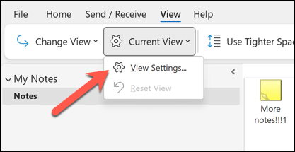 If you’ve recently configured your Outlook view settings, you might have mistakenly hidden certain notes (or all of them) by applying a filter or sort. To check and reset your Outlook view settings, follow these steps.