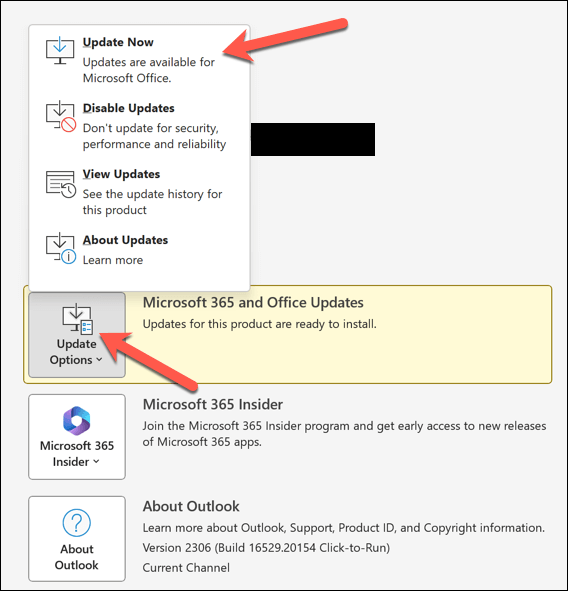 To fix this, you can try updating your Outlook to the latest version and see if that resolves the issue. To update your Outlook version, follow these steps.