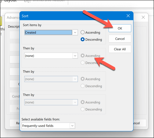 - Press Sort and make sure that the sort order is set to Icon or Modified, then press OK.