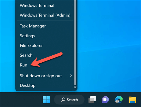 - Next, right-click the Start menu and select Run.