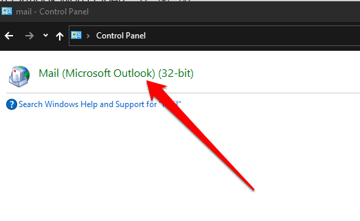 - In Windows, select Start > Control Panel, search for Mail and select it.