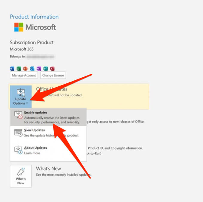 By default, Outlook installs updates automatically, but you can manually enable or disable these updates via your Office Account settings. You can also check for available updates and install the latest one on your device.
