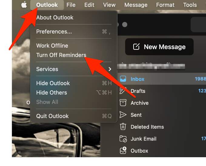 - Open Outlook and select Outlook > Turn Off Office Reminders.