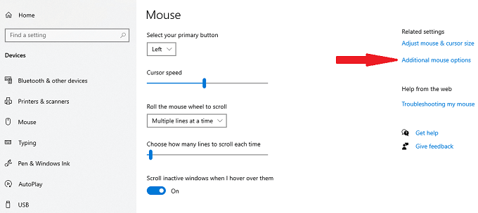 - Select **Additional mouse options.**