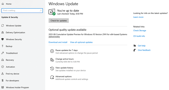 - Select **Check for updates.**