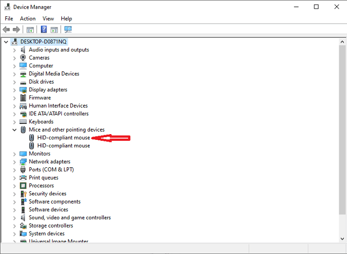- Right-click **HID-compliant mouse **and choose **Properties.**