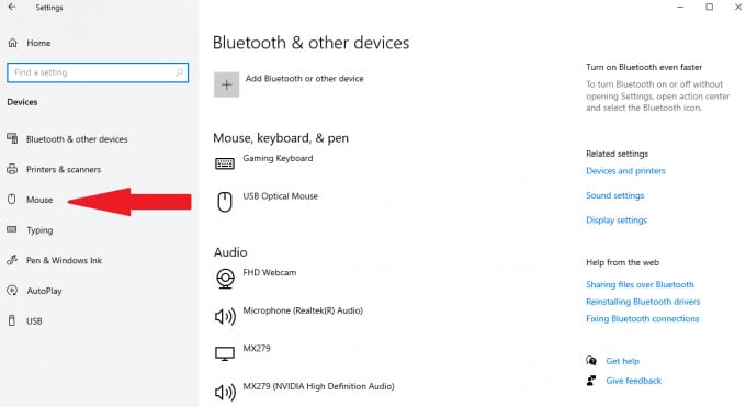 - Select **Mouse.**