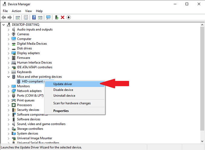 - Select your mouse and choose **Update driver.**