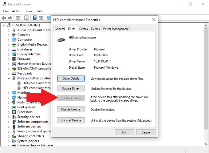 - Select **Roll Back Driver** (if available.)