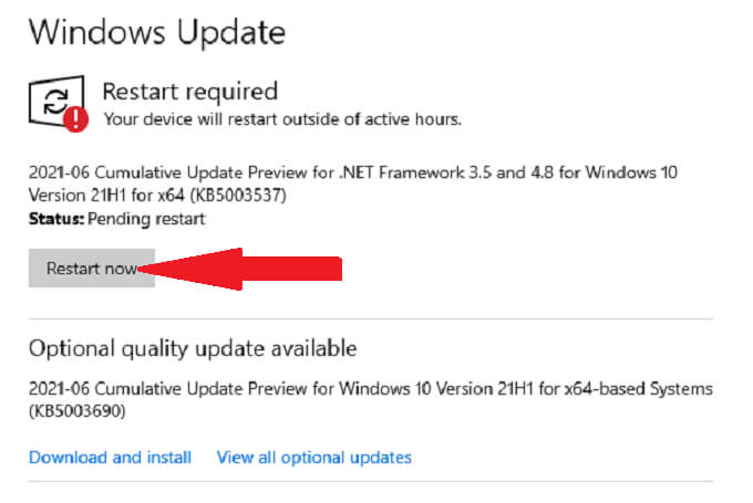 - If an update is available, download it and select **Restart now.**